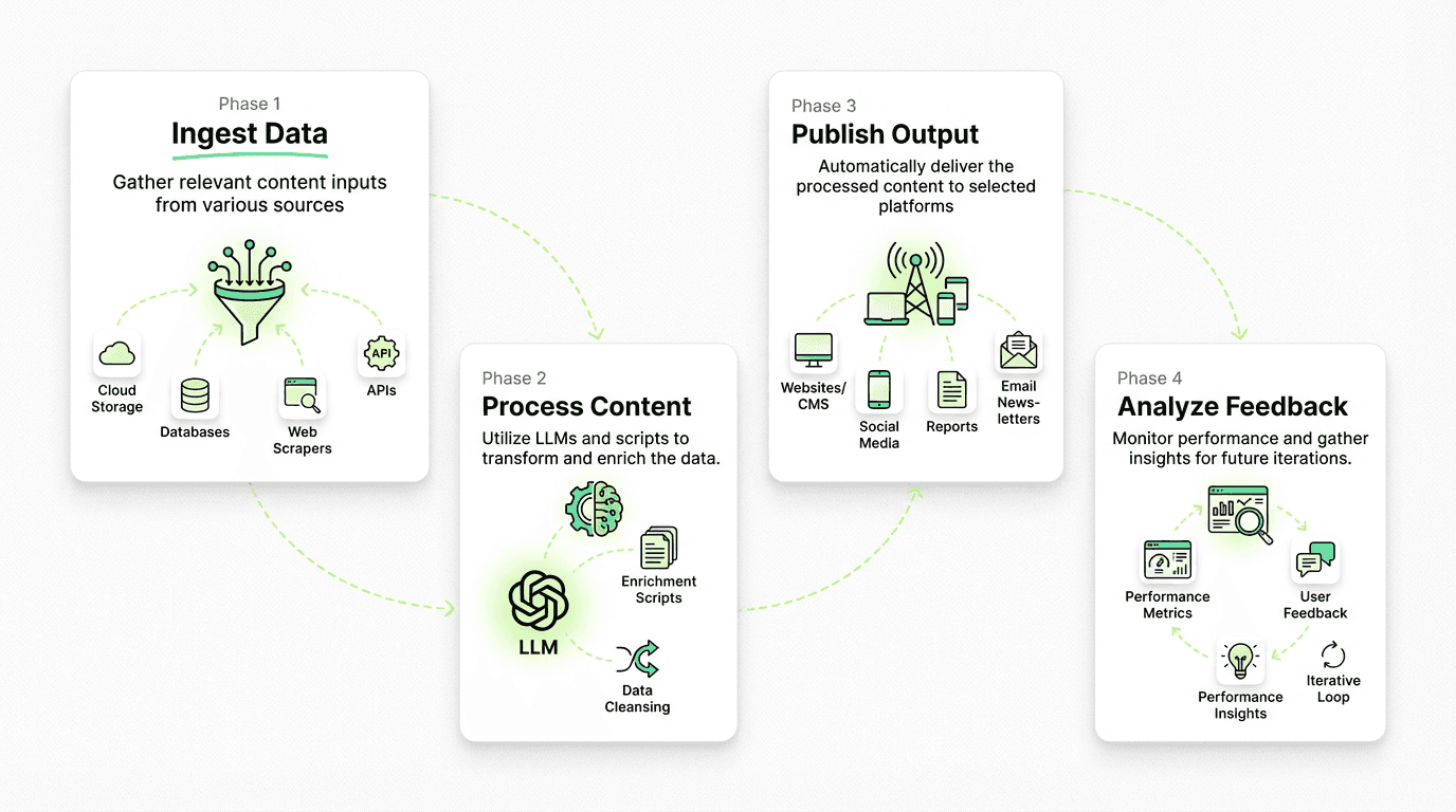 This modular architecture allows teams to scale content production while maintaining quality and adaptability, and represents a powerful form of ai workflow automation.