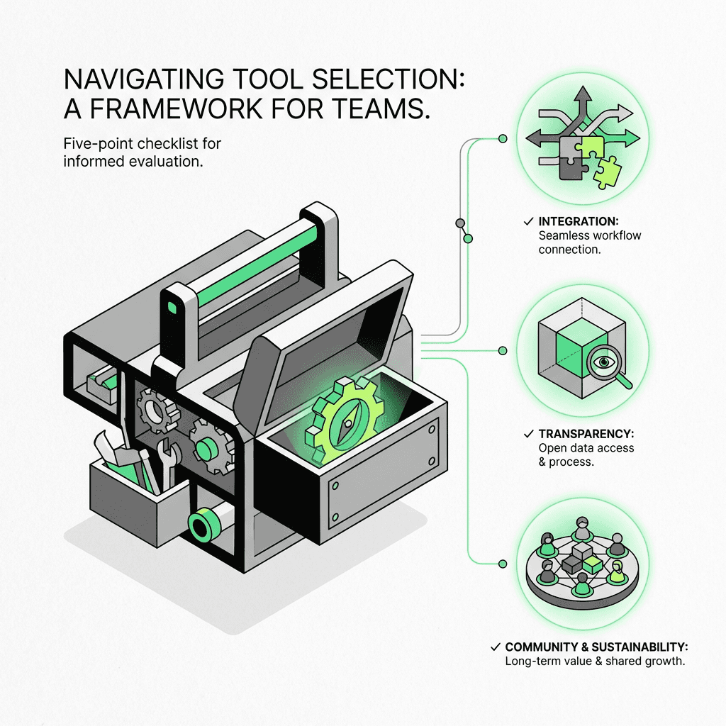 Pragmatic tool selection should prioritize alignment with actual workflows, extensibility, and transparency.