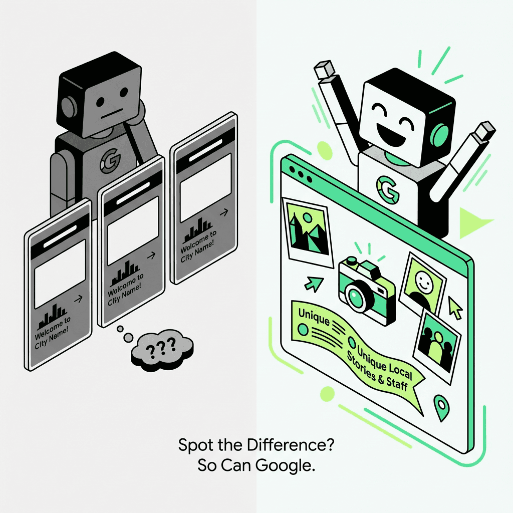 Here's the uncomfortable truth: AI models detect template-generated "near me" sites instantly. They've been trained on millions of them.