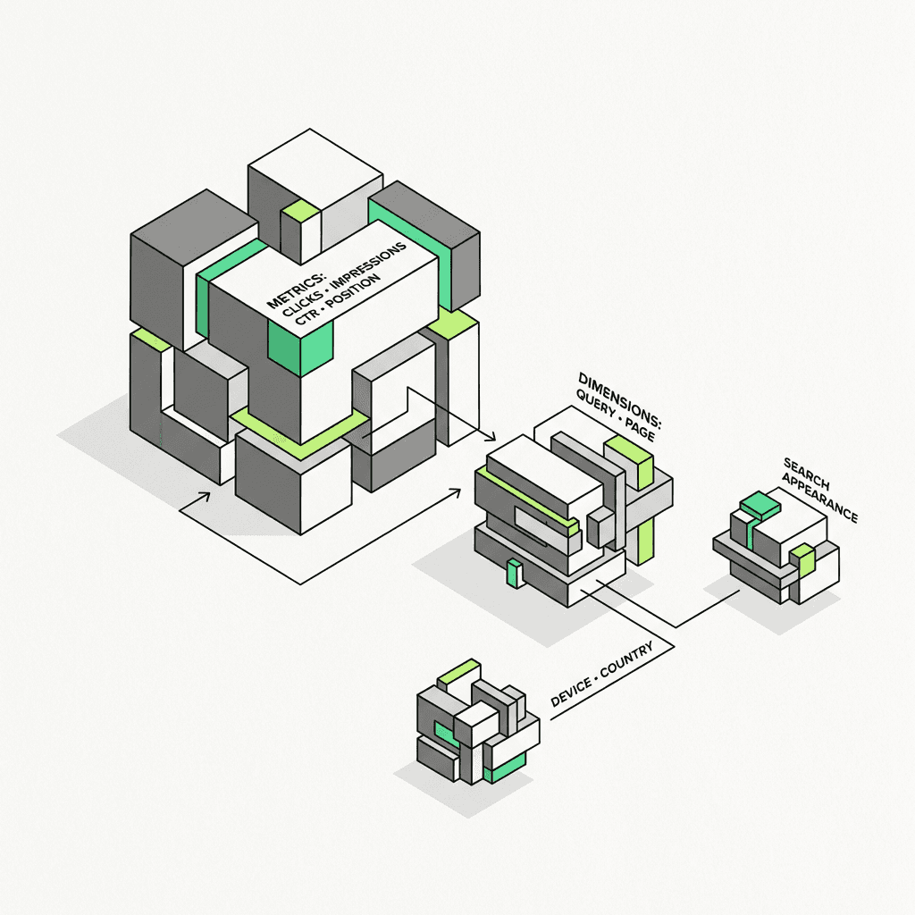 Before you start querying, you need to understand how the GSC API dimensions work. Dimensions are the axes along which you slice your data. The five core dimensions are: