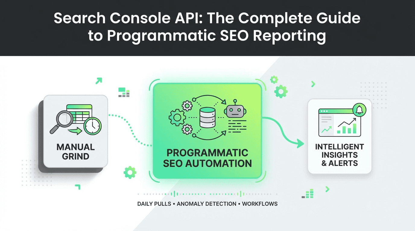 The Search Console API is the foundation of modern SEO automation. It transforms Google Search Console from a manual reporting tool into a programmable data source — one that feeds dashboards, databases, and intelligent decision engines.