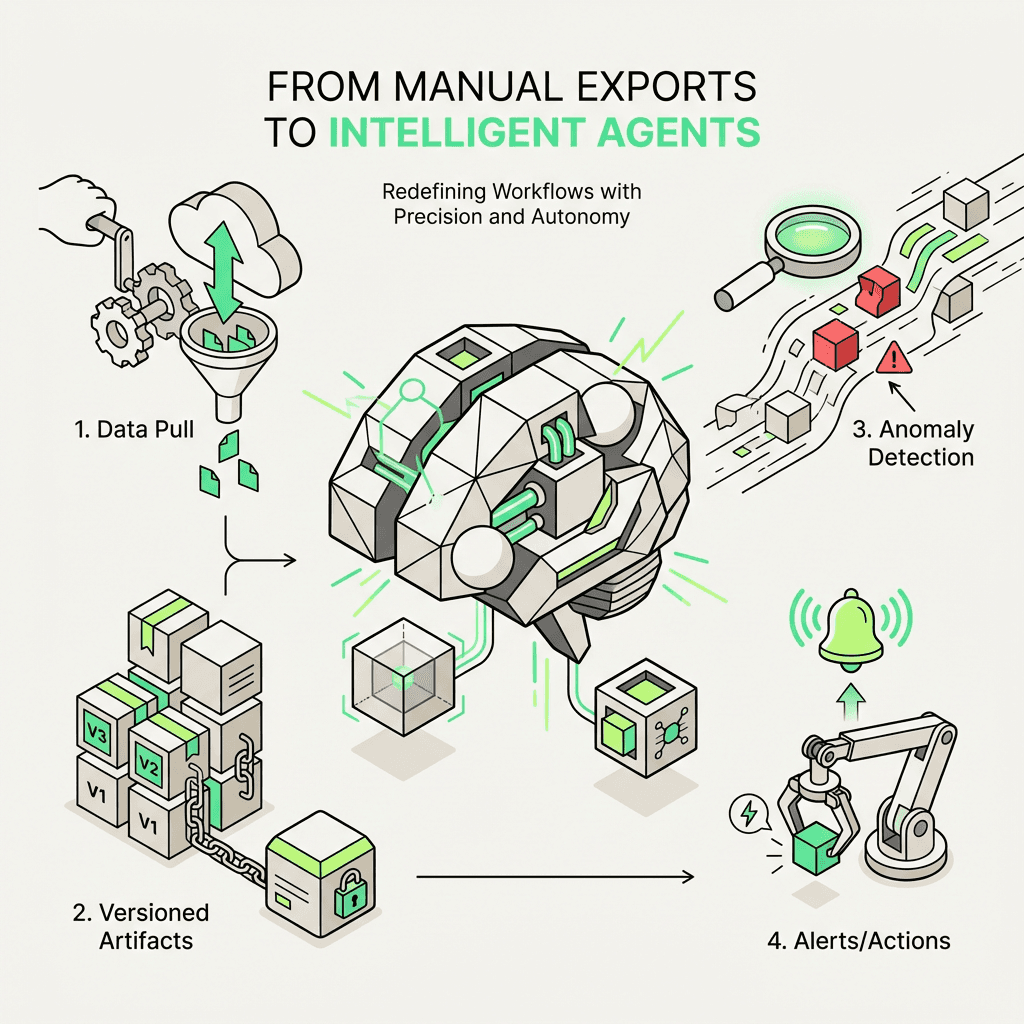 Trigger alerts: If an anomaly is detected, the agent sends a Slack message, creates a Jira ticket, or triggers a content audit workflow