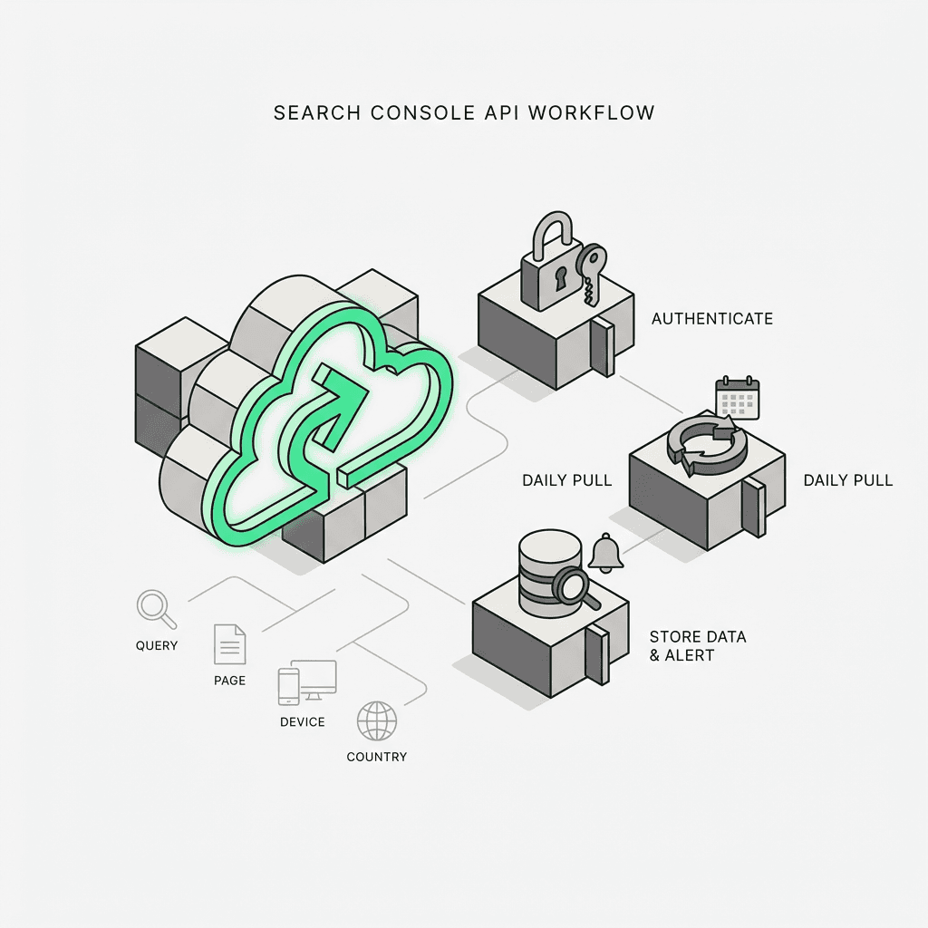 Every SEO professional has spent hours manually exporting data from Google Search Console, copying CSV files, and wrestling with spreadsheets. But what if you could automate the entire process — pulling fresh performance data every morning, segmenting it by query, page, device, and country, and triggering alerts the moment an anomaly appears?